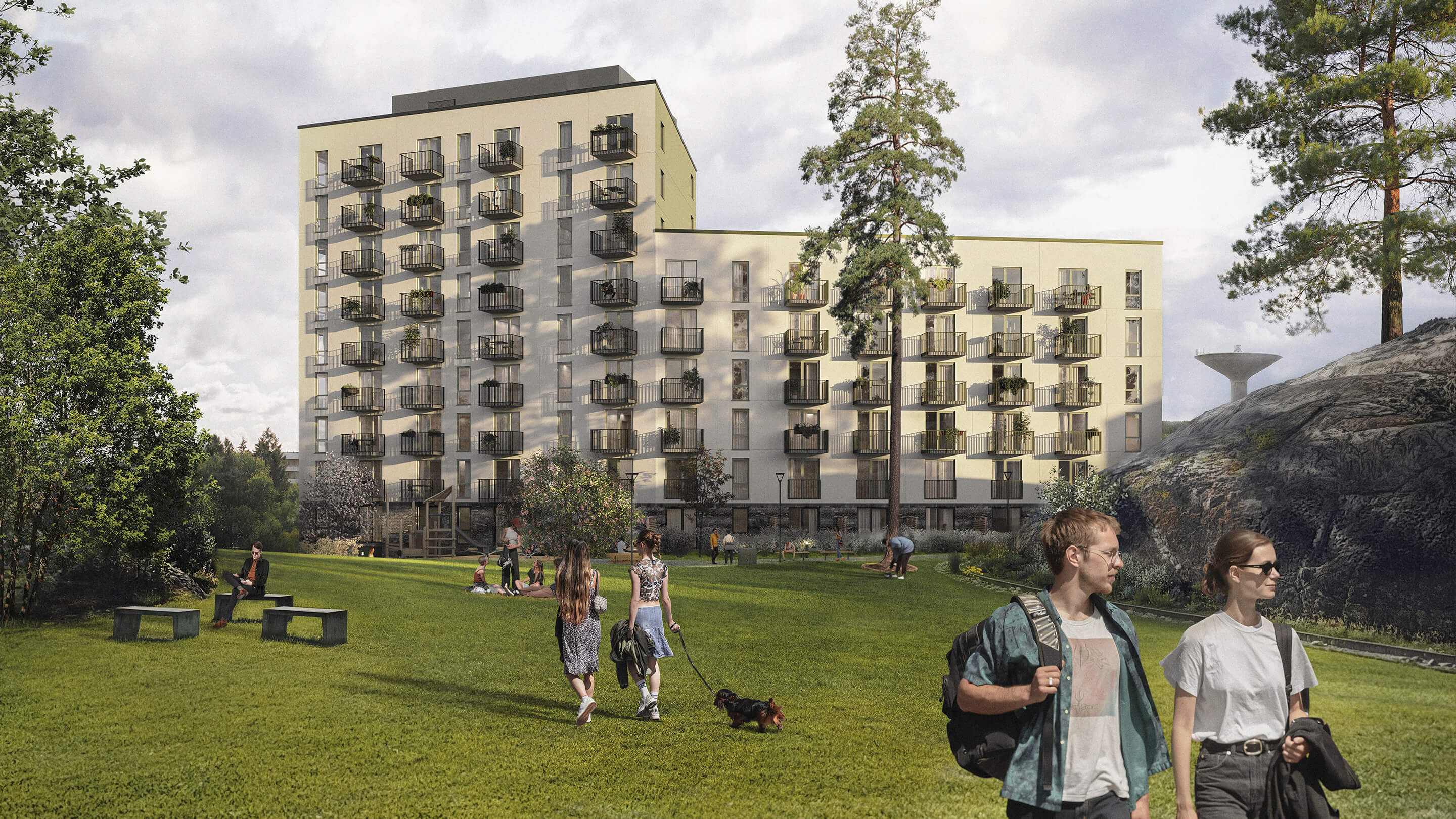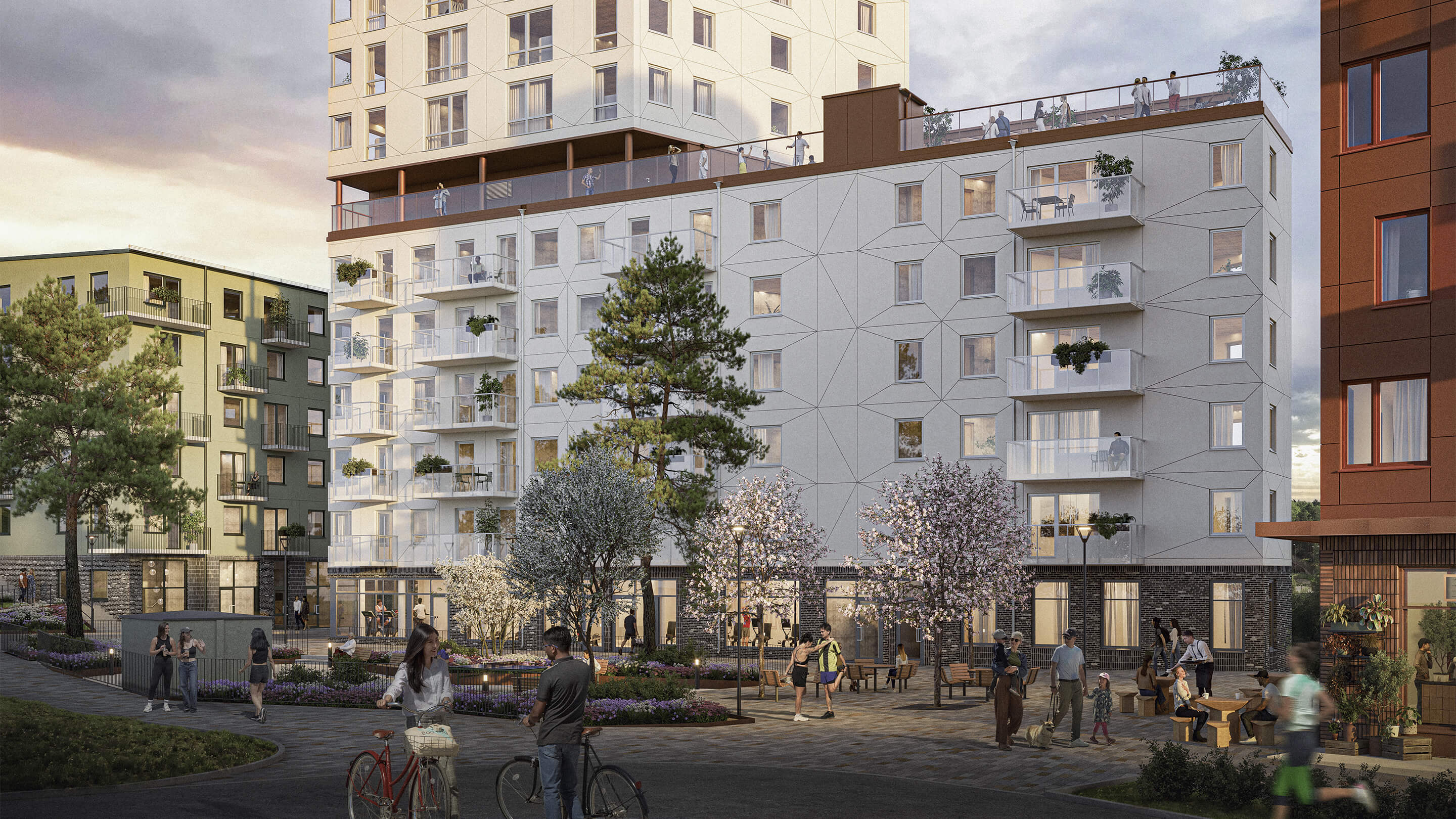 The contractor is Nexon (H2 Entreprenad). The project is developed by EQT Real Estate in collaboration with Byggvesta.